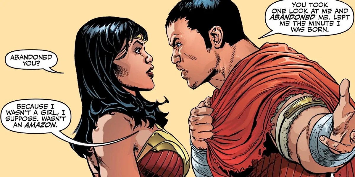 The easy speculation was that he was the son of both diana and clark, but this issue reveals an even more heartbreaking origin for him.. . Mais, à l'inverse, il fut élevé comme un être humain par des parents aimants, au kansas.